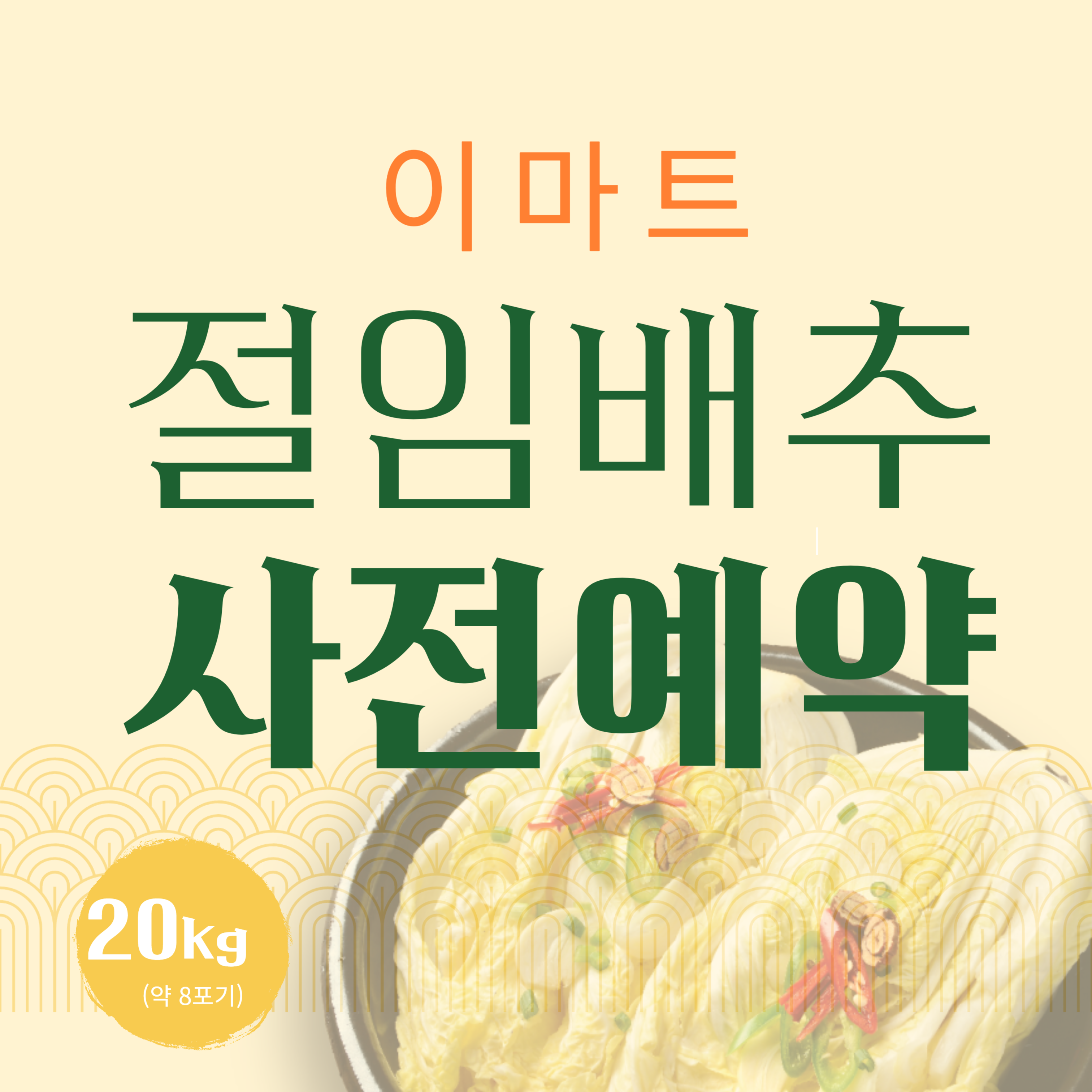 이마트의 절임배추를 사전 예약하여 간편하게 김장 준비를 하시고, 맛있는 김치를 만들어 보세요. 사전 예약을 통해 신선한 배추를 저렴하게 구매할 수 있는 좋은 기회를 놓치지 마세요!
