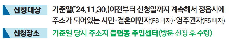 - 전출자: 신청일 이전 정읍시를 떠난 경우