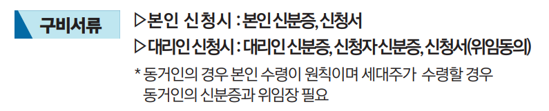 - 거주지의 읍·면·동 주민센터에서 신청 가능